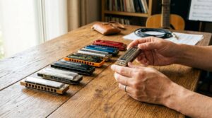まずは主役となるギター本体です。初心者の方には、抱えやすさと音のバランスが良い「フォークタイプ」や「ドレッドノートタイプ」が一般的です。最初の一本は、品質が安定している有名メーカーのエントリーモデルを選ぶと、挫折しにくく上達も早まります。予算は3万円〜5万円程度から探すと、長く使える良い楽器に出会えます。