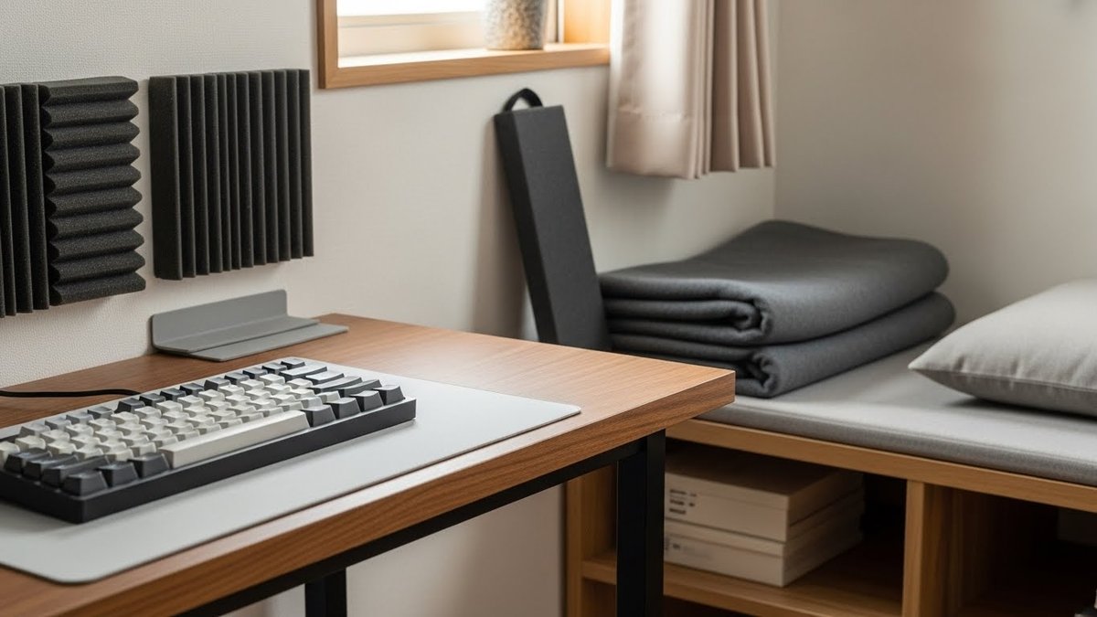 機材を揃えたら、次は部屋の環境を整えましょう。「キーボードをどこに、どのように置くか」という工夫だけで、音漏れの具合は劇的に変わります。大がかりなリフォームはできなくても、市販のグッズを組み合わせることで、賃貸でも高い防音効果を得ることができます。