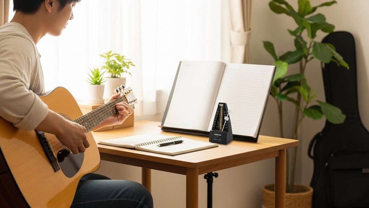 時間が取れない時は、あらかじめ「今日はこれだけやる」と1つの目標に絞るのがコツです。例えば、今日は「CコードとGコードの切り替えを10回スムーズにする」といった具体的な内容にします。あれこれ手を出さず、一つだけに集中することで、短時間でも脳に動きが定着します。